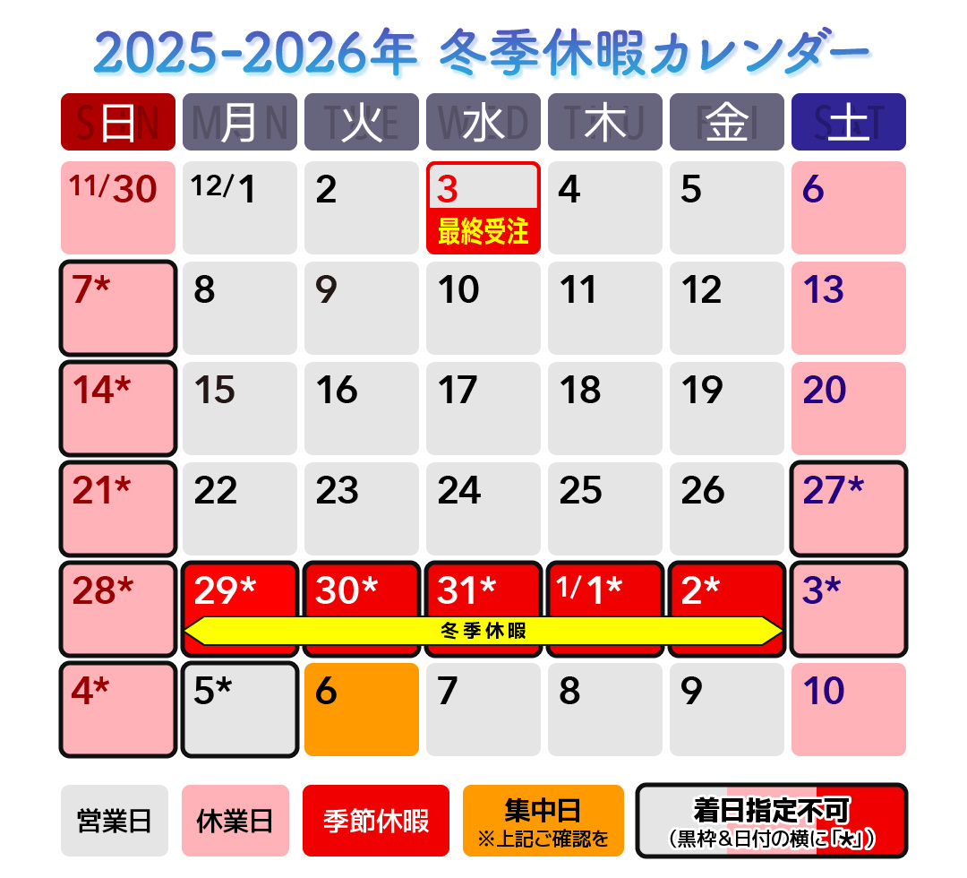 ・年始受注分につきましては、1月7日以降のお届け予定となります。